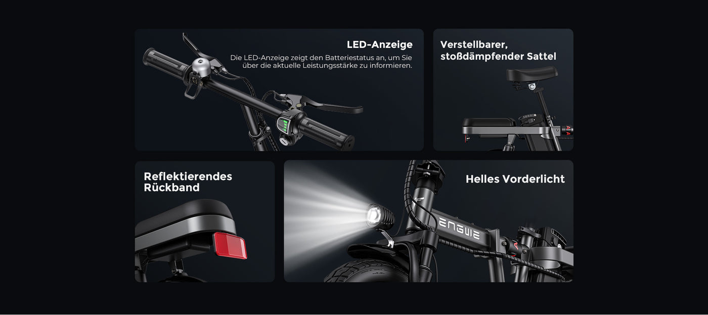 Stellen Sie sicher, dass Ihre Fahrradreifen immer den perfekten Druck haben mit der ENGWE Intelligenten Pumpe. Diese kompakte, tragbare Pumpe verfügt über ein LCD-Display für einfaches Ablesen und automatische Aufblas-Einstellungen, was die Reifenwartung einfach und effizient macht. Ideal für Radfahrer unterwegs bietet sie zuverlässige Leistung und sorgt für Sicherheit.